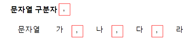 이 경우에는 ',' 이 쉼표가 구분자가 될것 입니다.