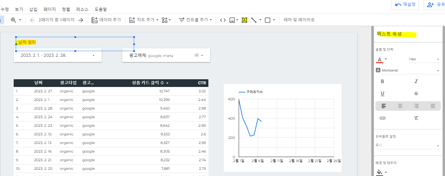 루커 스튜디오 레이아웃 2. 텍스트 박스