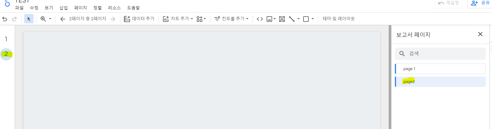 루커 스튜디오 페이지 추가 - 1 추가 후에 수정하는 창에서는 2라고 나오지만